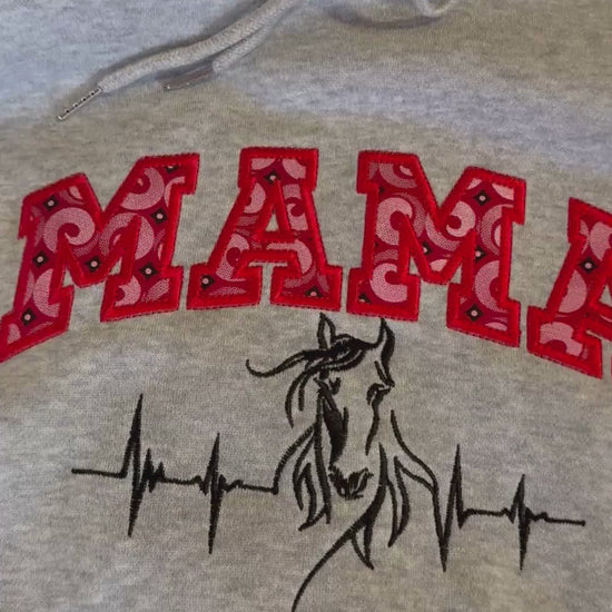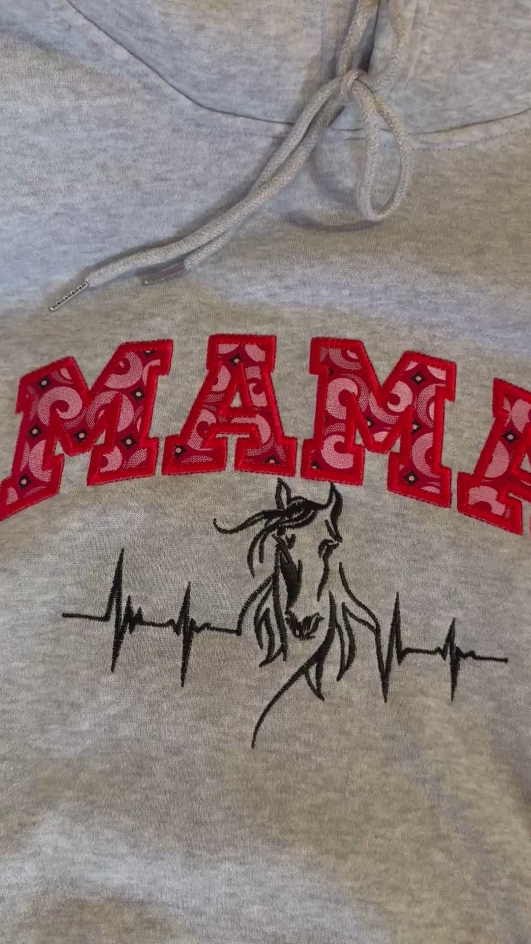 This handmade MAMA hoodie features bold applique lettering and custom embroidery. Cozy fleece inside, perfect for Mothers Day or everyday comfort.
